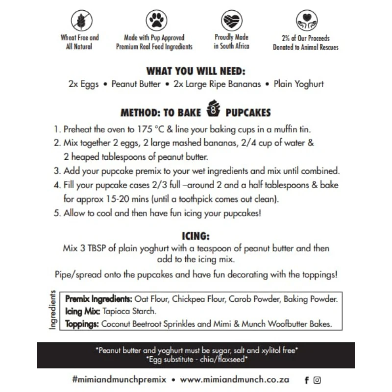 Bake alongside your pup with the Mimi & Munch Pupcake Premix, bringing joy and celebration into the comfort of your own home. 🧁