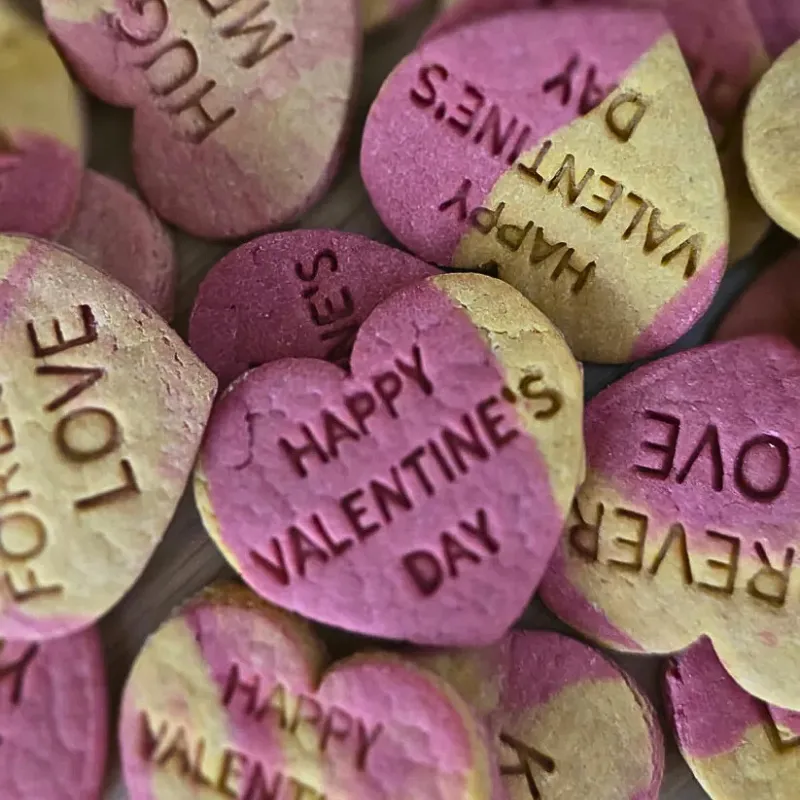 * Each product is handcrafted using dog-safe, natural ingredients and finished with thoughtful details designed to make Valentine’s Month feel extra special. From soft blush tones to hand-pressed cookies and heart-shaped designs, every piece is made to be gifted, shared, and remembered. The Mimi & Munch signature Valentine’s finishes are gently coloured using real beetroot – never artificial dyes or colours – creating a soft, romantic look suitable for all pups.